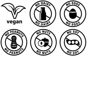 We operate in a shared commercial kitchen space that may process goods containing dairy, eggs, nuts and soy. We do not use these common allergens in our ingredients and make every effort to keep our space clean and allergen-free.